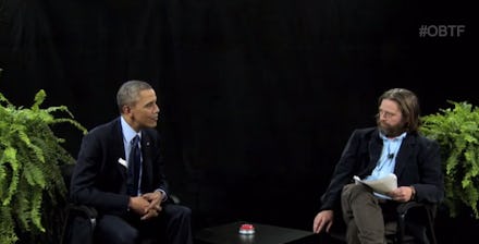 Along with the usual "Funny or Die" shtick, however, Obama and Galifianakis also poked fun at some of today's more absurd right-wing criticism. This started with Galifianakis assuming the clueless Obama-hating jerk persona, taking shots at birtherism and the "Obama is un-American" crowd. But as the interview progressed, instead of simply lampooning the right-wing, Galifianakis's jokes — in particular about the glitchy Affordable Care Act website — became more biting with some legitimacy behind them. Obama, in turn, calmly acknowledged the health care website's past flaws before describing how, hiccups notwithstanding, the Affordable Care Act has and will continue to help million of American as they continue to enroll. In so doing, the president not only presented a brilliantly straightforward defense of his health care bill, but used his cool-headed response to Galifianakis's jabs to demonstrate that even when a criticism is valid, it doesn't have to be approached with histrionics.