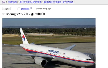 Someone Put Up a Craigslist Ad for the Missing Malaysia Airlines Plane