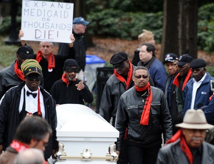 He wasn't alone. As of last month, only 25 states and the District of Columbia have voluntarily expanded their Medicaid programs. The unlucky impoverished of the remaining 25, under the resolute leadership of men like Florida's convicted Medicare fraudster-come-Governor Rick Scott, have become part of a growing "Medicare eligibility gap": an estimated five Americans who remain uninsured despite a federal government willing and able to foot the bill. No doubt they feel especially free right now.