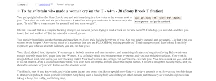 But despite her over-the-top tone, the author had a point. Hopefully, this letter and its author's righteous anger gives future bullies pause before they attempt to verbally abuse unsuspecting strangers trying to enjoy a peaceful commute.