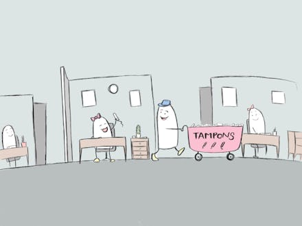 Your boss already pays for everything else in your bathroom, and that should include sanitary products too. So why isn't this conversation happening across all offices in America? One of the roadblocks is that menstruation is a topic that's still taboo. The way men often talk about it is similar to the way bigots used to get away with talking about homosexuality in the '90s: "I'm fine with it as long as I don't hear about it." Although many awesome ad campaigns have helped disrupt those age-old stereotypes, the shame associated with menstruation persists.