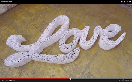 The company hired two artists to turn the hate, quite literally, into love. They rolled up all the nasty letters — the words "horrible," not wholesome" and "disgusting" are visible in the video — and glued them together to make the word "love."