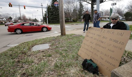 Residents of South Euclid, Ohio, were treated to a curious sight this Sunday when they came across a man sitting at a street corner with a huge sign: "I AM A BULLY! I pick on children that are disabled, and I am intolerant of those that are different from myself. My actions do not reflect an appreciation for the diverse South Euclid community that I live in."