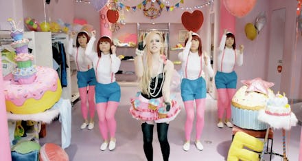 Watching this video is sort of like having someone blow loudly in your ear while they shine a really bright light in your eyes. It's hard to imagine that none of the people involved — the artistic oversight at Sony Music (a Japanese company), the director of the film, Lavigne's PR team and lead singer of Nickelback Chad Kroeger (Lavigne's husband, co-writer and erstwhile Hello Kitty enthusiast) — thought to stop her. Especially after Gwen Stefani made this same mistake when she unveiled her Harajuku Girls, right around when she went platinum with "Hollaback Girls." And only half a year after Miley Cyrus used her black dancers like props while she performed "Blurred Lines," the most downloaded song in UK history, at the VMAs. And just days after Sky Ferreira got slammed for an eerily similar video for "I Blame Myself."