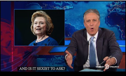 Jon Stewart Flawlessly Takes Down Media's Sexist Coverage of Clinton Pregnancy