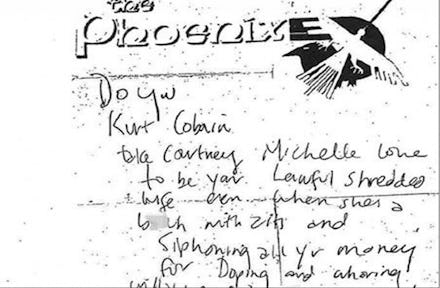 Twenty years after the tragic and mysterious death of Nirvana frontman Kurt Cobain, the case has returned to the public eye. The Seattle Police Department recently released a cut-off picture of a bizarre letter found in Cobain's wallet during its investigation of his 1994 suicide. The note reads as a vicious mockery of Cobain's marriage, with Courtney Love characterized as a "bitch with zits ... siphoning all [Cobain's] money for doping and whoring."