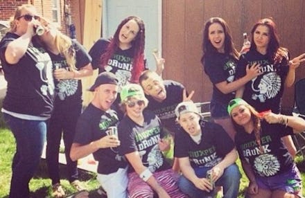 The shirts were emblazoned with the the old Sioux mascot — a Native American "chief" figure — drinking from a beer bong along with the heading, "Siouxper Drunk."