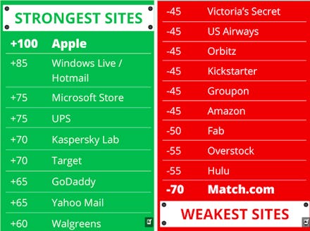 The study shows 86% of sites which received a “subpar” score of below +50, the study’s minimum requirement for password security. Match.com, Hulu, Overstock, Fab, and Amazon posted the lowest passwords scores.