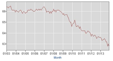 That's the percentage of people 16 and older active in the job market, and the precise reason why these jobs reports should be taken with a grain of salt. Is the unemployment rate falling because so many jobs are being created or because people are leaving the workforce?