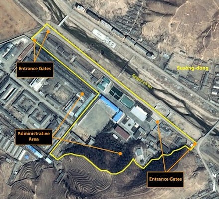 The news: According to the Committee for Human Rights in North Korea (HRNK), this is what a North Korean prison camp looks like. Kwan-li-so (penal labor colony) No. 25, located outside the city of Chongjin in North Korea's North Hamgyong province, has undergone major expansions since 2010 and is believed to hold some 3,000 to 5,000 prisoners. According to the HRNK, these pictures from satellite footage show what the camp looks like.