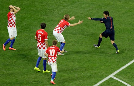 And it wasn't just the penalty. Ten minutes later, Croatia seemed to have scored the equalizer, only for it to be disallowed by a dubious foul on Brazil's goalkeeper. Other more debatable calls, including Neymar receiving only a yellow card for elbowing Croatia's Luka Modric when a red card (and a one-game suspension) was probably more warranted, made one thing clear: Nishimura was out of his league.