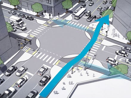 The news: Say hello to the bike lanes of the future, which could help save hundreds of lives a year. Portland, Ore., urban planner and designer Nick Falbo has designed these bike lanes, which include protected intersections, preventing cars from having the opportunity to bonk a bicyclist.