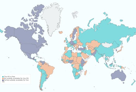 In light of recent events, Slate used data from Harvard University's Center for Population and Development Studies to put together an updated map that shows which countries around the world provide free birth control pills to the public. To put this in perspective: Iran is one of them, the U.S. is not.