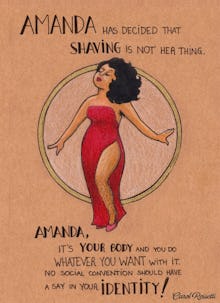 Despite quickly garnering thousands of enthusiastic comments and shares on Facebook, the project started as something personal — so personal, in fact, that Rossetti is still figuring out what to call it. For now, the images reside in albums simply titled "WOMEN in english!" or "Mujeres en español!" which is fitting: Rossetti's illustrations encompass a vast set of experiences that together create a powerful picture of both women's identity and oppression.