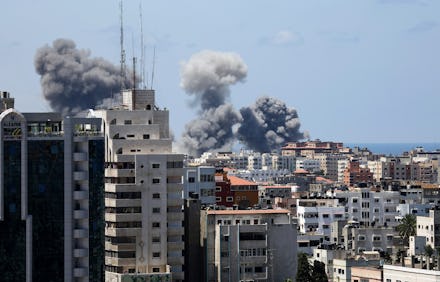 Smoke from rockets fired from a northern neighborhood of Gaza City is seen after being launched toward Israel. Image Credit: Getty