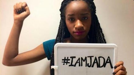 Understandably, she was "very angry" upon seeing the photos circulating around social media. But Jada ultimately wanted to counter her bullies by telling her own story. Before starting the interview with Farrow, she held a placard with the #IAmJada hashtag and posed with a clinched fist in a signal of strength. To draw more awareness of Jada's story and bravery, Farrow asked social media users to take a supportive stand and post tweets with the hashtag #IAmJada.