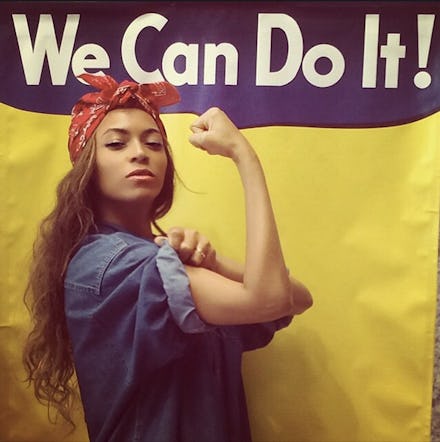 In part, many exclaimed their approval because this homage to the iconic Rosie the Riveter signifies Beyoncé's feminism — an issue that continues to be debated by feminist bloggers and trolls alike. Even feminist foremother, the esteemed bell hooks, took qualms with Bey's feminism recently, calling her a "terrorist" because of her participation in capitalist society.
