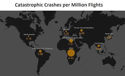 The result? Stay out of Africa if you want to avoid a catastrophic plane crash. You’re 33 times more likely to crash if you fly a plane operated by an African airline than by a North American one, according to the International Air Transport Association (IATA).