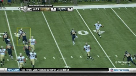 Here's what his first play looked like (Sam is No. 96 near the top of the screen):
