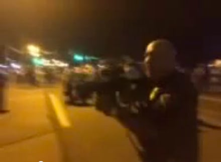 In the video, the protestor can be heard responding to the officer, “My hands are up bro, my hands are up” -- a protestation that has, incidentally, been the rallying cry of those assembling in Ferguson.