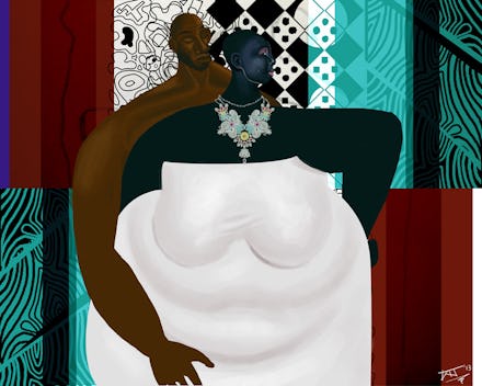 James, who also produces his work under the name Mokojumbie Design, has tried hard to avoid falling into the same traps. For one, the women in his portfolio are not viewed as secondary players the way that they are in Dove's or Victoria's Secret's work; they're not being used to sell a product. These women appear to own their bodies and their space. It's an empowering concept, and one that certainly adds to the images' bold aesthetic. Second, his work isn't claiming to represent "real women" — it's merely depicting women James himself sees as worth paying attention to.