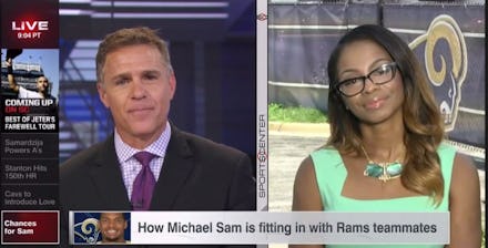 Indeed, instead of focusing on Sam's staying power, ESPN reporter Josina Anderson spent almost the entire two minutes discussing a detail that would be completely irrelevant for Sam's heterosexual counterparts: How he prefers to use the locker room showers.