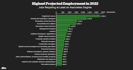 There's good news if you're a nurse or if you want to go into medicine. Nursing will be No. 1. The U.S. will need over 3.2 million registered nurses in 2022.