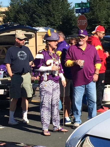 It's unclear whether this fan was mocking the situation, condemning Peterson or showing support for the team's star running back. Regardless, child abuse is very obviously not something to joke about, let alone to be an inspiration for a tailgating costume. This comes on the heels of Thursday's game in Baltimore, where a large group of fans — some of them women — wore Ray Rice jerseys and expressed support for the embattled Ravens running back.
