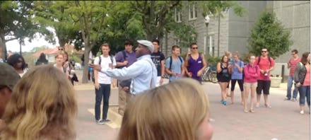 Because of Virginia's new free speech laws, people like Jackson are able to gather on public campuses without a permit, as long as they doesn't pose a physical threat. So instead of trying to get him removed, students tried to engage Jackson in conversation, calling him out on his remarks and questioning him on his fundamentalist beliefs. Several students showed up with rainbow flags and staged a peaceful protest to counter Jackson's presence.