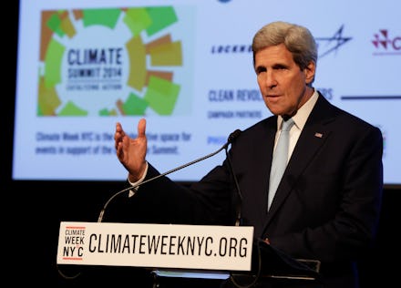 Kerry's comments come as the United Nations convenes in New York City for a climate summit and one day after the massive People's Climate March drew hundreds of thousands of demonstrators to the streets. The Hill reported Kerry's comments, which were delivered on the opening day of Climate Week NYC: