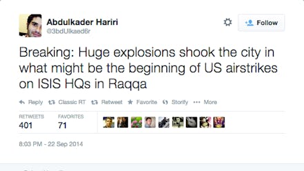 This Syrian Man Is Livetweeting the U.S. Strikes Against the Islamic State