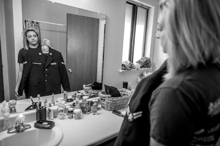Calvert added that she wanted to show what each woman's life was like when she was away from everyone else, offering a clear sense of how surviving sexual assault affected their everyday state of being. "I looked at the symptoms of military sexual trauma, which include include paranoia, isolation, self-medication and the ultimate would-be, suicide," she said. "I tried to show a different part of that with each person I chose to photograph."