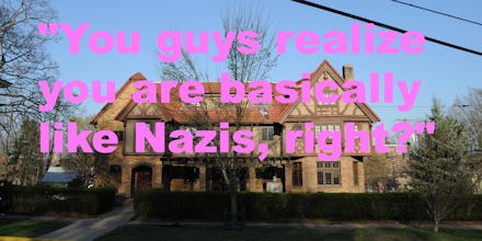 This guy went off on a rant about Nazis, because feminists are fascists and poor frat boys are just like Jews.