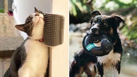 We pet parents are always looking to keep our companions busy when we're away from home, and you'll find plenty of ways to do just that, like these little catnip animals that'll delight your kitty, or this snuffle feeding mat that gives your pup a challenge at mealtime. You'll find things for small animals, too — check out these playtime balls that your chinchilla, rabbit, or ferret will love to chew on while rolling them around the crate