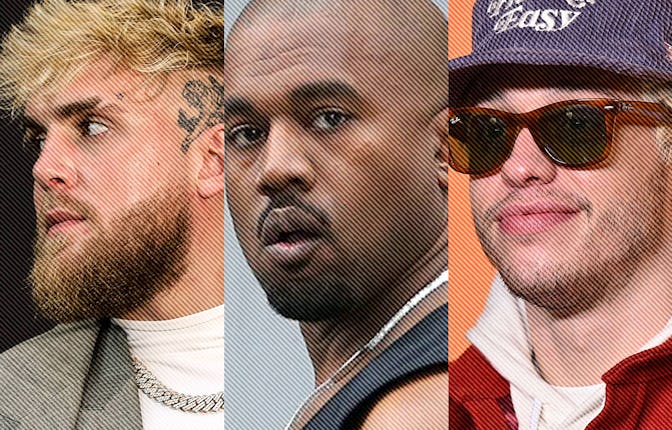 In the past six months or so since Kim Kardashian began dating comic Pete Davidson after hosting SNL in October 2021, it’s been impossible to miss her ex-husband Kanye West’s public unraveling. It’s been a masterclass in how to not handle a breakup. He’s gone on countless nonsensical social media rants, and even put out a music video for the song “Eazy” in which Davidson, who he calls Skete, is buried alive and decapitated. So far though, despite verbal threats, physical violence has been missing. But it was only a matter of time before some member of the heteronormative patriarchy bopped in to suggest it. Enter Youtube personality turned boxer Jake Paul, who is now offering each man $30 million to participate in a six-round boxing match.