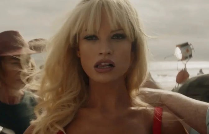 From director Craig Gillespie — who has experience recoloring women from the period from directing I, Tonya — the trailer begins with Seth Rogan as Rand Gauthier, the electrician who stole the tape from their home, showing the tape to porn producer “Uncle Miltie” played by Nick Offerman. The two are portrayed as skeezy voyeurs, mullets and all. Uncle Miltie utters in astonishment at the scandalous footage, “it seems so private,” adding, “that’s kind of what makes it so hot.” It’s a damming insight into how the show will condemn the frenzy that surrounded the release of the tape. As the trailer continues, Lee (Sebastian Stan) tells a panicking Pamela Anderson (Lily James), “I’m on the tape the same as you.” She counters, “not like me, you’re not,” a subtle but accurate intuition that the culture of the time would treat Anderson differently upon the release of the tape.