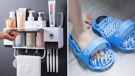 This toothbrush holder does much more than hold your toothbrushes in place. Sure, it does that (for four brushes, to be exact), but it also boasts an automatic toothpaste dispenser along with three cups. There's even a towel holder underneath so you can keep your wash clothes at the ready.