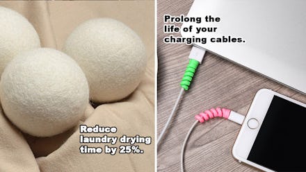 Instead of spending money on dryer sheets and fabric softener, toss these wool dryer balls in with your laundry. The eco-friendly dryer balls are reusable and gently tumble around with your laundry to help it dry faster and leave it feeling soft and fluffy. Each pack contains six.