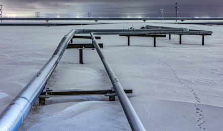 But have no fear, these companies have a solution for their own problem. According to an environmental review published by the Department of the Interior's Bureau of Land Management (BLM), Big Oil firms have used cooling devices to freeze the ground underneath their rigs and pipelines, providing additional stabilization that allows the extraction process to continue. The technological tools, which have been in use for several years now, range from equipment that can determine when the ground is solid enough to support oil infrastructure to thermosiphons that suck heat out of the ground to prevent permafrost from thawing out from underneath oil lines.