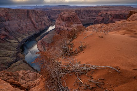 New research published this week in Science took a look at the Colorado River's dwindling water supply and found the primary culprit to be human-caused climate change. Specifically, because of a global rise in temperature related to greenhouse gas emissions, the Colorado River has become burdened with more water evaporation and fewer consistent sources to replenish its supply. According to researchers, hotter temperatures are resulting in less snow and ice during winter months — which would typically feed into the waterway. That replenishing process isn't happening with the same frequency that it once did. Add to that the fact that the temperature rise has forced the Colorado River to absorb more of the sun's energy, resulting in more water evaporation, and you're left with a water source that is rapidly running dry. Scientists warn that the Colorado River is likely to lose as much as 9.3 percent of its water for each degree Celsius temperature rise. Given that we are currently on track to experience a global temperature rise of as much as 4.1 degrees Celsius by 2100, the Colorado River could lose as much as 40 percent of its current water reserves by the end of this century.