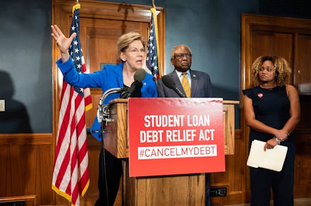 Leading the charge to use the pandemic as an opportunity to truly help people, while simultaneously stimulating America's floundering economy, is former presidential candidate Elizabeth Warren, who has called to fully cancel at least $10,000 of federal student loan debt per borrower. It's a move the Massachusetts senator claims would not only make the individual borrowers' lives better, but would ultimately help pour money back into the economy itself — and some economists have affirmed her theory.