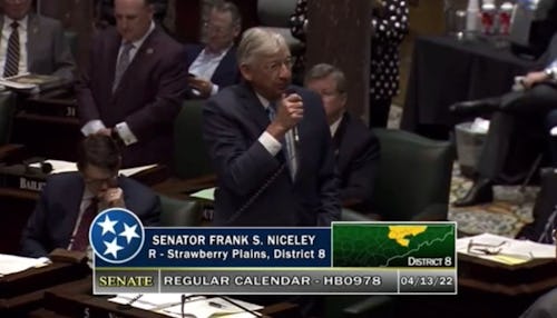 Tennessee Republican State Sen. Frank Niceley is a man of many talents. He’s a farmer, a hunter, and a dedicated student of history. Unfortunately, the history he’s such a fan of is — contra his folksy surname — not so nice; like the time he claimed that the Civil War was still happening and that the South was winning; or the time he said cockfighting was a proud Tennessee tradition (it was banned in 1881) that brought important tourist money into The Volunteer State; and most recently, when he stood up on the senate floor this week to tell a heartwarming story about a young man who overcame the challenges of homelessness, and went on to make something of his life.