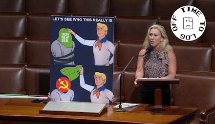 That, unfortunately, is how we end up here: with MTG (fresh off blowing up a car with an obscenely overpowered sniper rifle that she plans to raffle off to the various white nationalists and neo-Nazis that populate the social network Gab) trying to link the idea that perhaps the U.S. government should do something about cataclysmic climate change with the specter of communist China. Also, Scooby-Doo is involved for some reason.