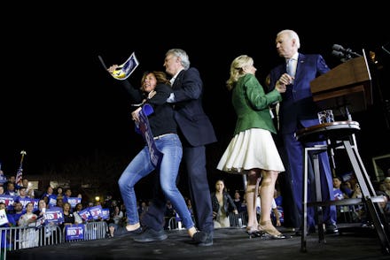 In a sense, this all could be seen as something of a metaphor for Biden's entire presidential run: While the candidate himself stands in front, saying something that will be torn apart by the media for even a whiff of incoherence, his surrogates are the ones doing the hard work of (in this case literally) putting themselves on the line to buttress Biden's campaign in the face of an increasingly rowdy electorate.