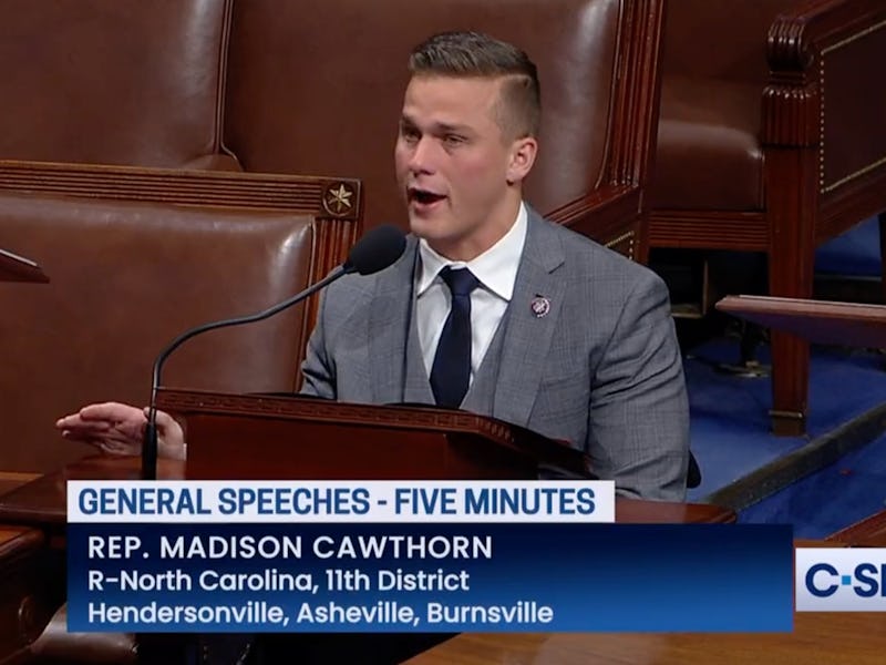 Speaking ... well, more shouting really, during Congress’s “general speeches” time on Monday, Cawthorn used his five minutes to join the GOP’s lockstep assault on the transgender community, as well as to distract from his recent, erm, imbroglio amongst his party’s (alleged!!!!) sex and drugs fans. And, like most things Cawthorn, his attempt to make a terrible, bigoted, inaccurate point was largely overshadowed by the fact that he is not, by any stretch of the imagination, a good, or even competent orator. Instead, this is a guy who yells about Burger King and “tallywackers” because of freedom, or something? Honestly, I’m not sure. Here, see for yourself: