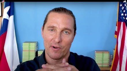 Here’s a fun drinking game for you: Take a shot every time he says “service” or “serve” and then immediately check yourself into your nearest emergency room for an acute case of alcohol poisoning. Or watch the video on mute, and see if you can guess what he’s getting at, solely based on his gesticulations alone. Or, better still: Play it in an endless loop around bedtime and let Matthew’s dulcet twang lull you into a deep sleep, filled with dreams about freedom and prosperity and conspicuously arranged stacks of McConaughey’s surprisingly well-received memoirs in the background.