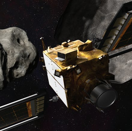 Crucially, DART’s intended target isn’t actually an active threat to our planet. The spacecraft will be slamming into Dimorphos, a 160-meter chunk of rock orbiting Didymos, a larger asteroid measuring in at almost three-quarters of a kilometer. The hope is that DART — which is only about the size of a car — will hit the asteroidlette hard and fast enough so that telescopes on Earth can measure if and how much Dimorphos’s orbit around Didymos is affected. That all comes later, though. If this week’s launch goes off without a hitch, DART isn’t scheduled to smash into Dimorphos for almost a year — or sometime this coming September.