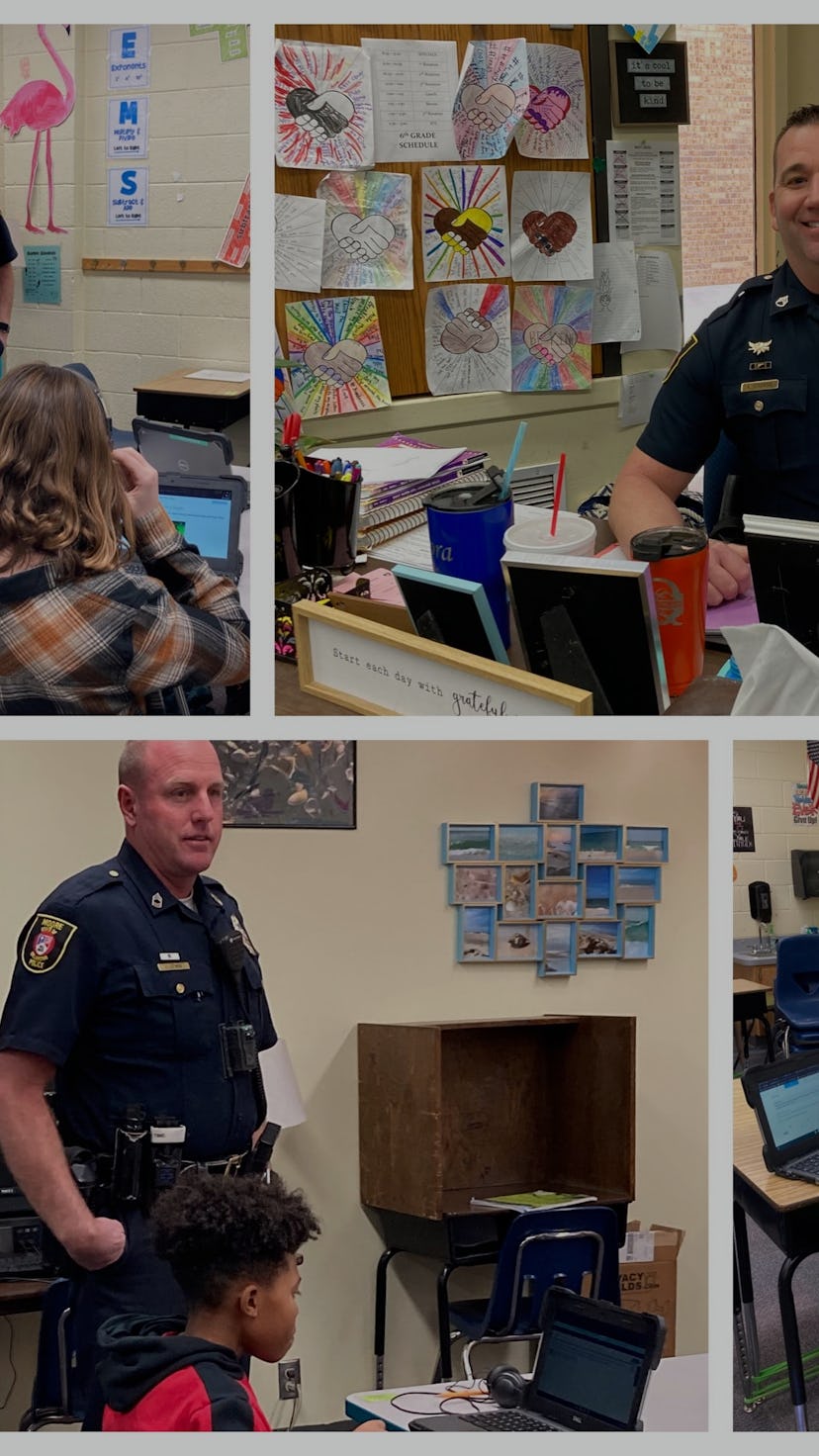 The result of this policy — other than guaranteeing students spend most of their days watching movies after the subs finally locate the rolling cart with the TV on it — is cops in the classroom. The Moore Police Department in the small city of Moore, Oklahoma, posted on Facebook showing some of its members stepping in to serve as substitutes as the school district’s actual teachers quarantine at home with coronavirus infections.