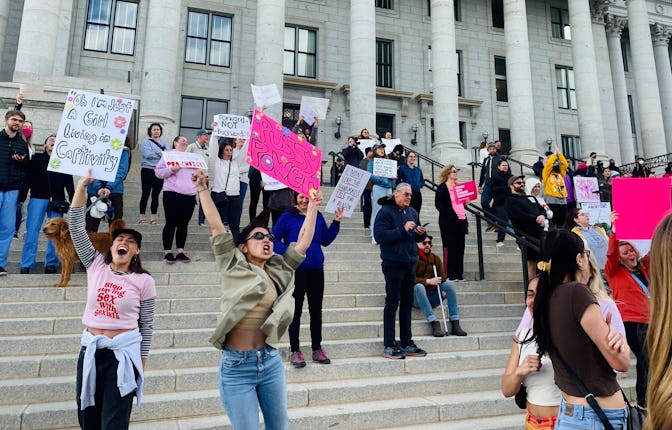 Utah is one of the “trigger law” states, which means that abortion would most likely be banned outright if the Supreme Court rules to overturn Roe v. Wade. But as one of the only Democratic cities in the state, Salt Lake City had residents of all ages and genders show up to make their voices heard. As the crowd rallied and organizers gave speeches, only a handful of security guards stood to watch by the doors of the Capitol building.