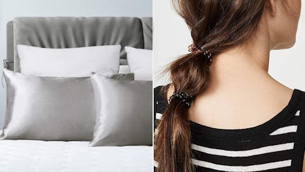 If you're stocked up on products, you might want to add a silk pillowcase to your bed set. These ones are made with smooth satin that's gentle on your hair to help prevent breakage. Dr. Sobel chimed in about silk pillowcases in general, and he said that they "allow the hair to slide around on your pillow, which can help with smooth hair. These materials will also not pull or damage your hair or hair follicles."